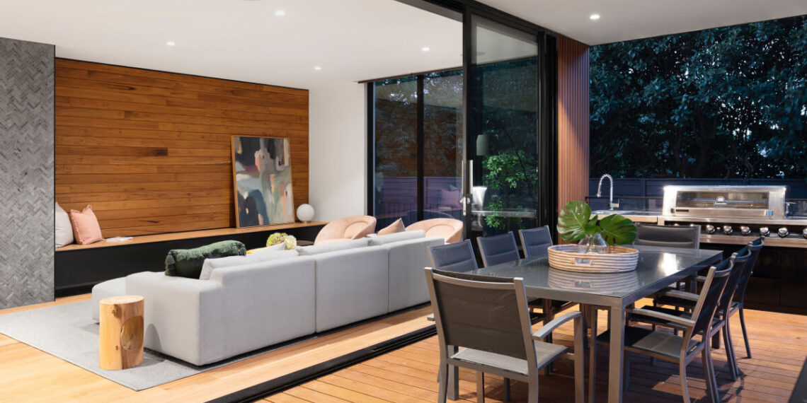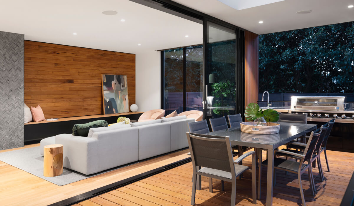 Indulge in outdoor living in the meticulously landscaped backyard, featuring a serene patio area perfect for al fresco dining and entertaining. Surrounded by towering trees and lush gardens.